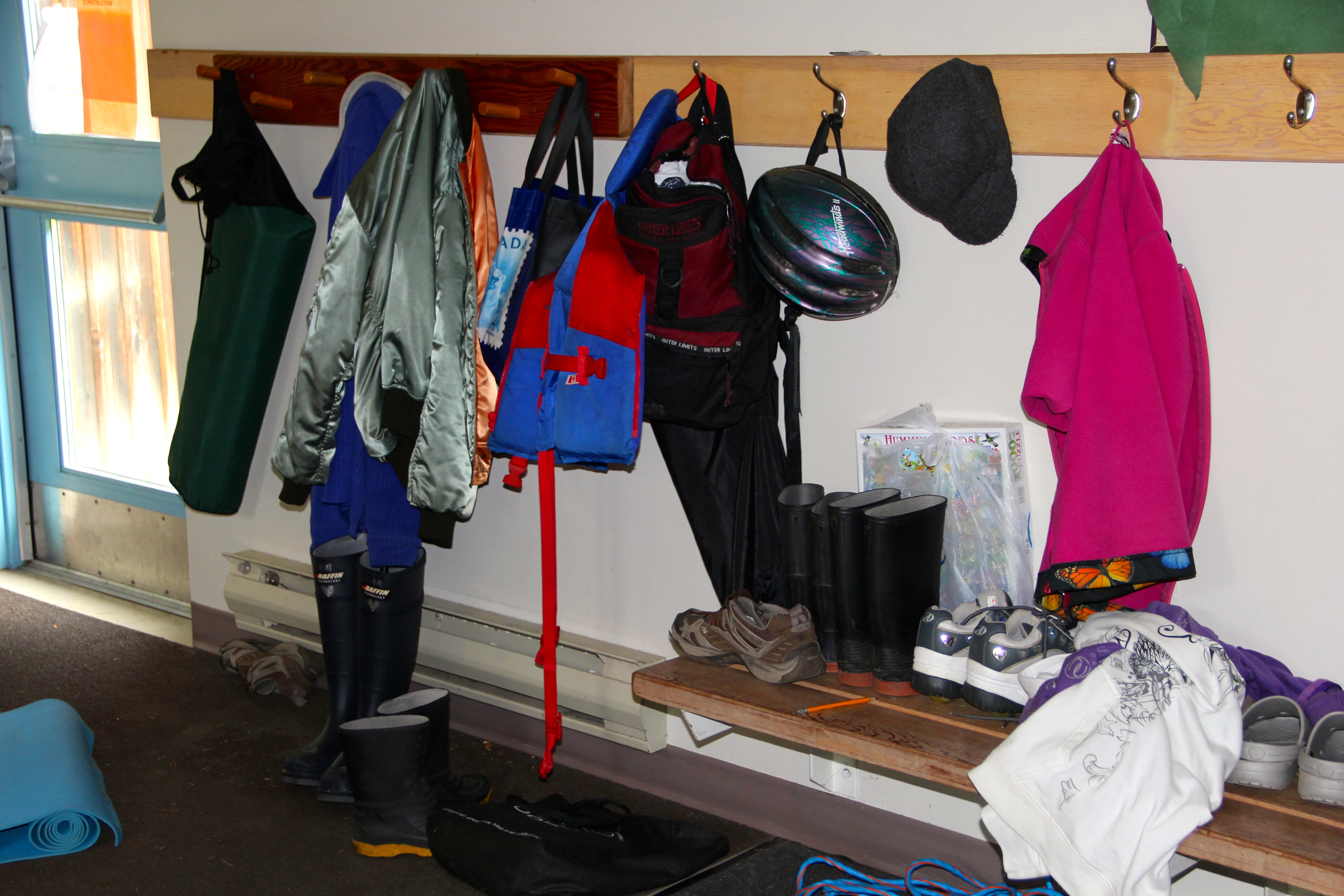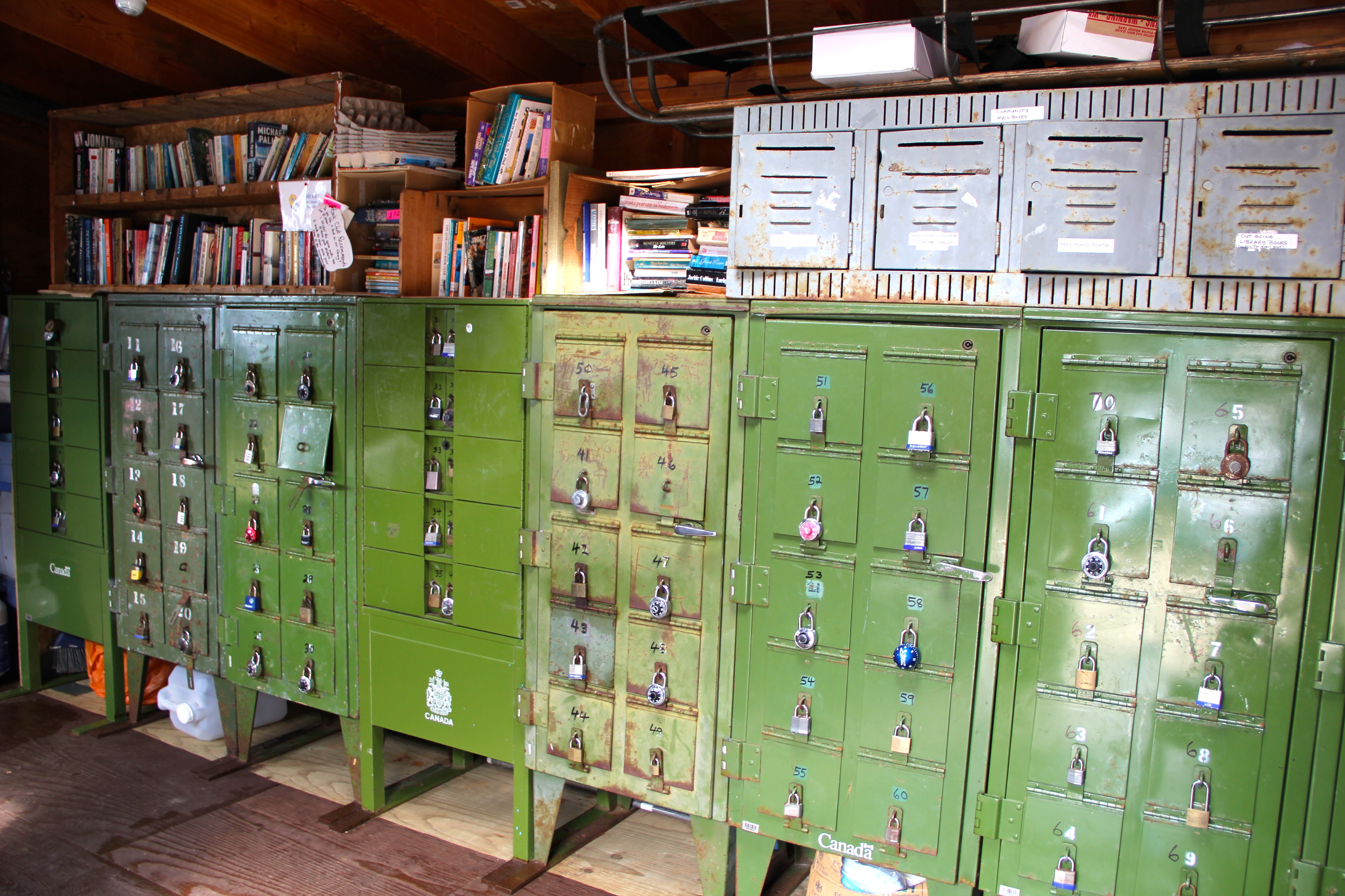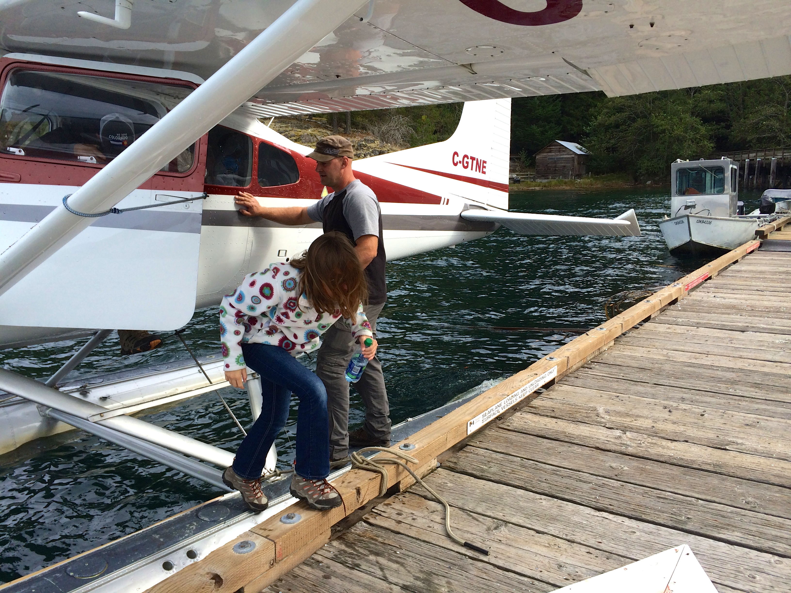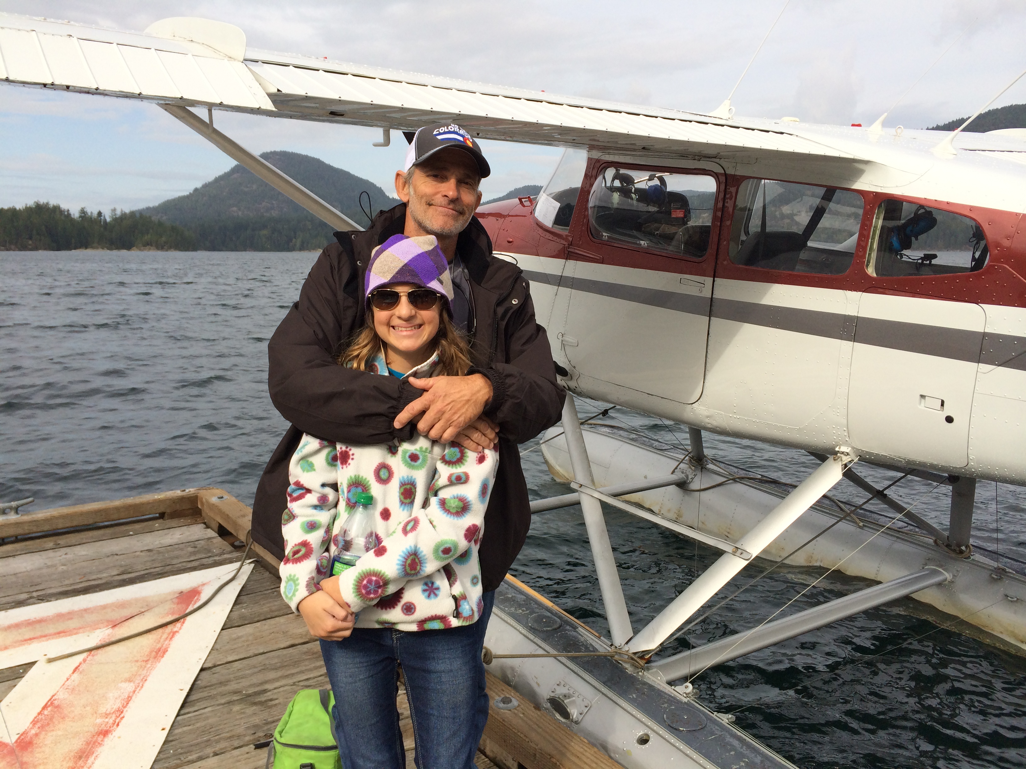 The mail flight, a Cessna 185 modified with floats, made 3 water takeoffs and landings. Absolutely spectacular, just the thrill of flight, landing and taking off in the water and docking a plane was almost sensory overload for this girl! The smell of aviation gas, Savannah’s smile, and Jim’s white knuckling were also some serious entertainment! We flew over seals basking on rocks, the maze of kelp, fishing boats, gunk holing boats and gorgeous clear water with little islands dotted like freckles on a smile child’s cheeks. One of the stops was pulling up to the only floating post office in Canada (photo below with the green po boxes) at Surge Narrows on Read Island. A remote island to say the least. The inhabitants survive off the land, with propane, generators and river turbines for power. The Pilot was kind enough to let us walk up the hill to visit the one room classroom that happened to be in session. The 12 kids only attend school 3 days a week. He said to just let ourselves in. Wasn’t sure if the teacher was going to come out with her rifle and scoot us on our way or what. The door did have a sign that read, “please leave your dog on the leash while in the classroom”… The “one room school room” was actually pretty nice. We entered into the “mud room” where all the kids shoes and packs were removed and hanging. Loved seeing the life vest hanging on the wall, as apparently one child travels a good bit by boat. Her mother drives her to school 3 days a week in all sorts of weather and water conditions year round. Her husband travels 5 weeks at a time leaving this Mum and kid to fend for themselves in the back country. In my book this woman is a stud. The gymnasium was to our left and enclosed with huge log beams and had a gorgeous wood, full length basketball court. To our right were several large rooms and the sounds of kid’s voices. Three teachers were present and beyond friendly, they promptly stowed the rifles and gave us a look around with open arms. The kids sort of just stared at Savannah and Savannah just sort of stared back, very interesting exchange. The school was being powered up by propane generators. You could hear them purring on the walk up to the schoolroom. The 12 kids ranged in age and were currently working on some crafting. What a life these families must lead. By the end of our visit, 2 of the girls that were Savannah’s age apparently did not want us to leave, they were so intrigued by our presence. I didn’t want to leave either! But the pilot was on a schedule, so we had to get on our way, but not with out taking off with our post cards for my Mom and Jim’s parents as part of the mail delivery! J