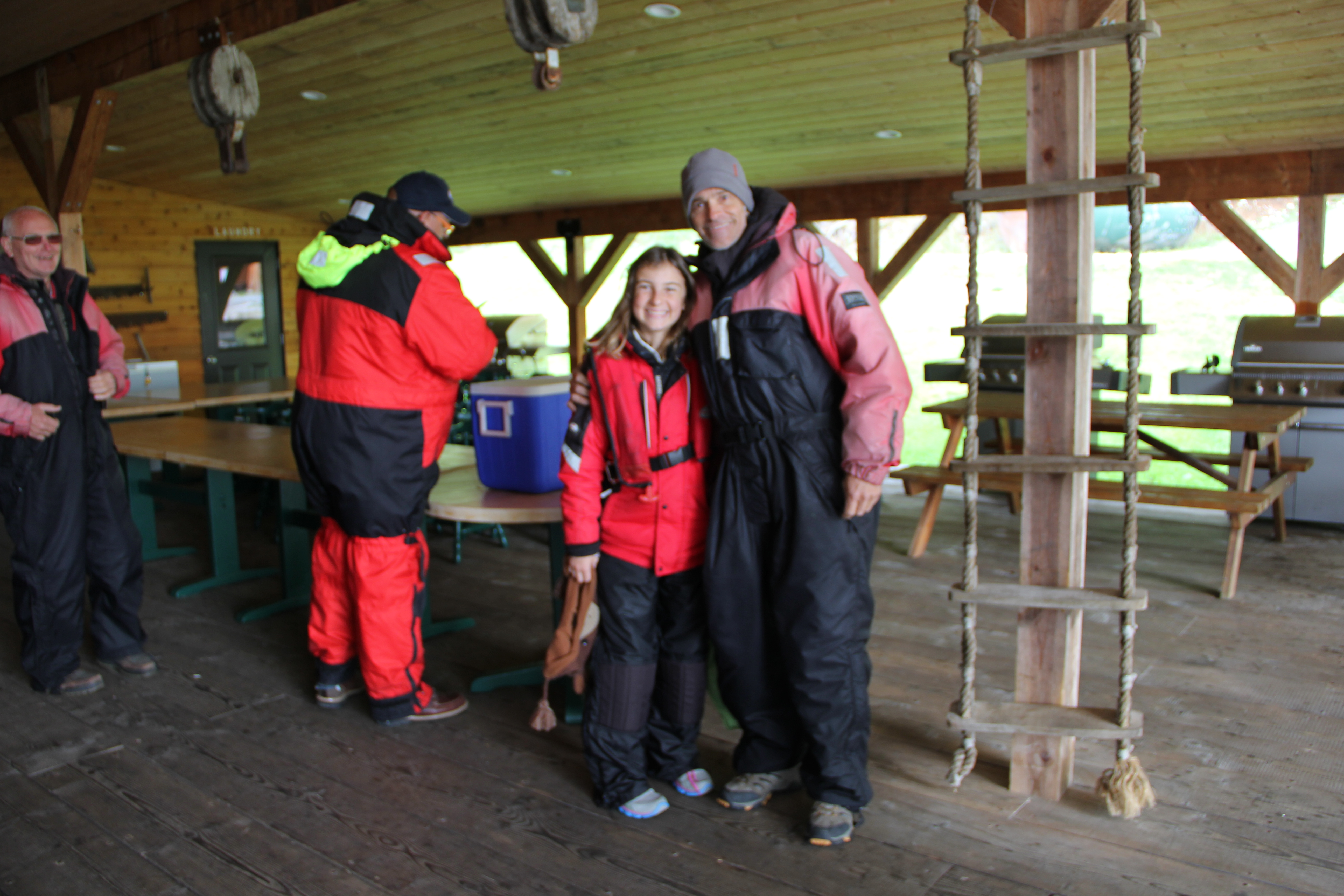 Once arriving to Butte Inlet, home of the “Homalco” Indians, we piled into a VERY small bus WITH our survival suits on WITH 6 other people WITH their suits.. I looked back at Jim in the back row and he was totally having a claustrophobic moment and stripping down. Haha We then were dropped at a small outpost to remove the suits, use the facility and get then get on another bus! The roads were extremely rough, bumpy and muddy from the logging trucks and equipment.