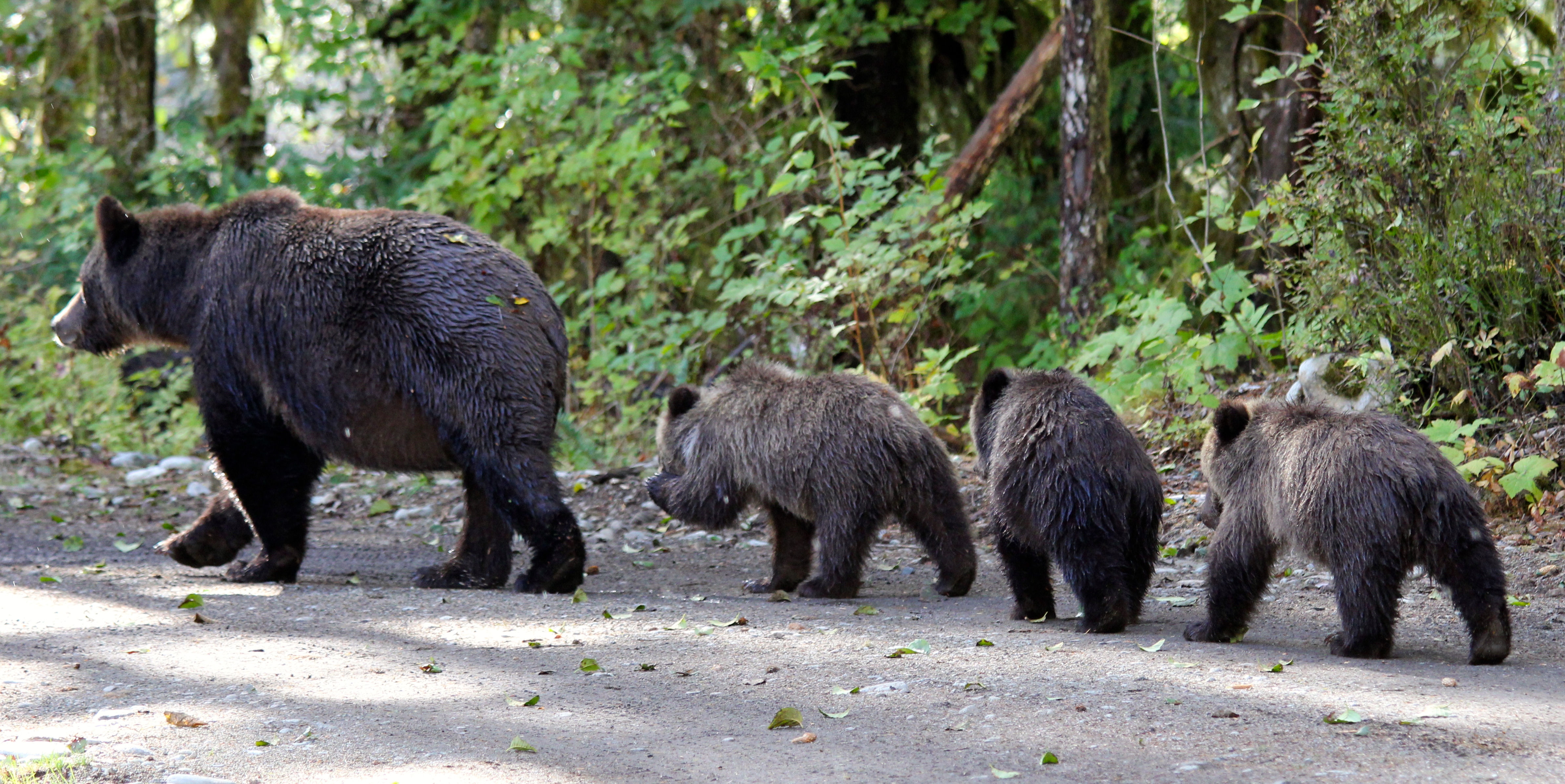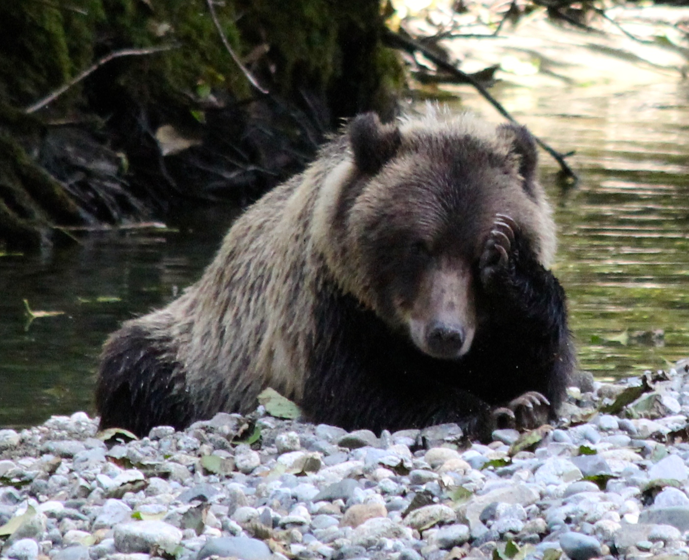 In the meantime I guess the other set of cubs and their Mum also had their share of salmon and decided to take a siesta! All four of them groomed and sprawled out on the river banks, basking in the filtered light of the forest for a big bear nap.